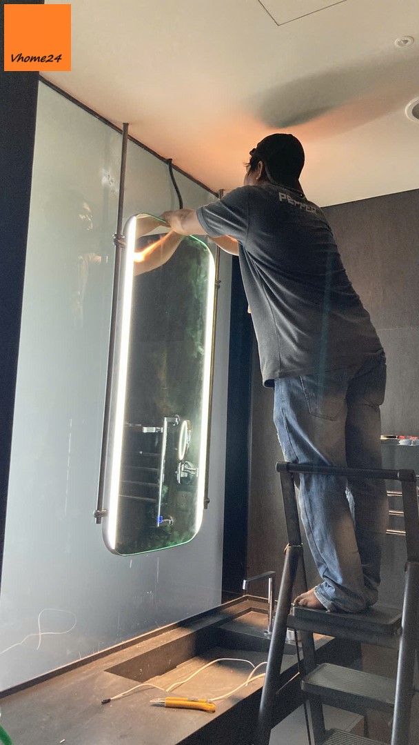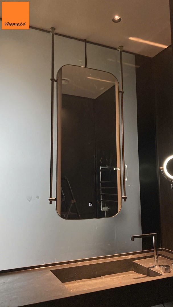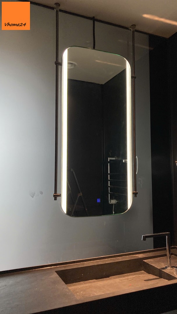 Đặc điểm: nút cảm ứng on/off bật tắt ngay trên gương + thanh inox treo trần chắc chắn.