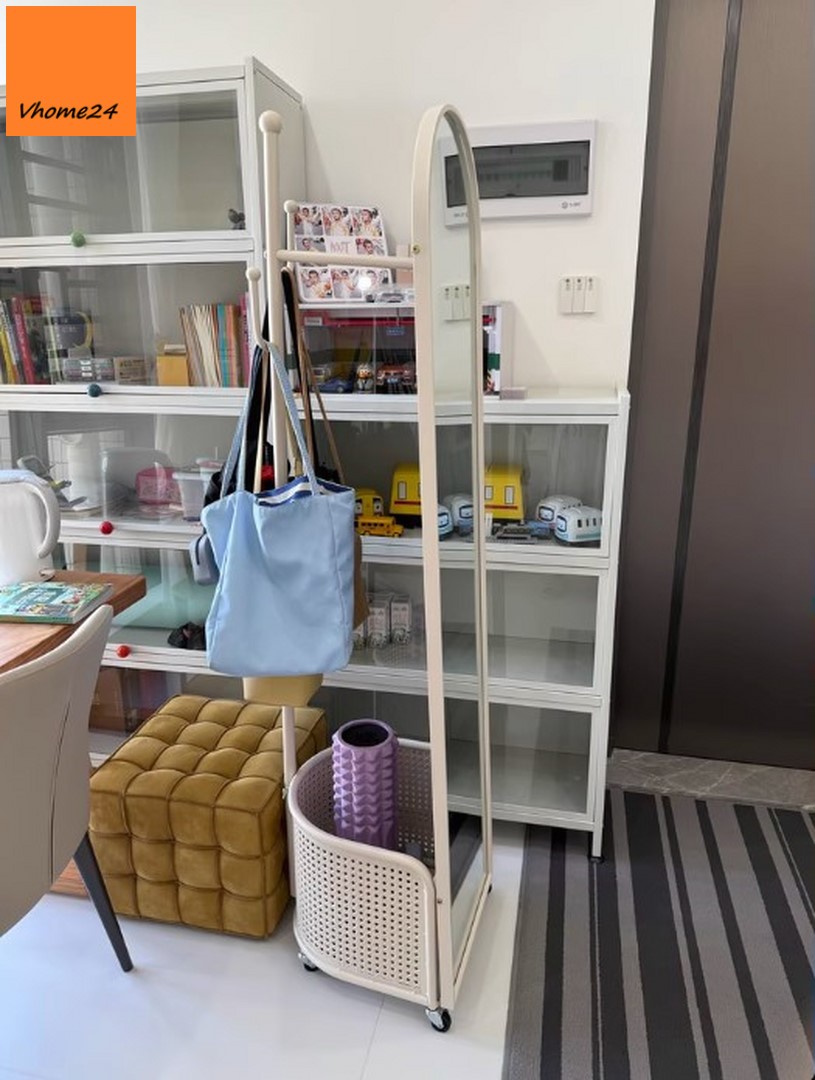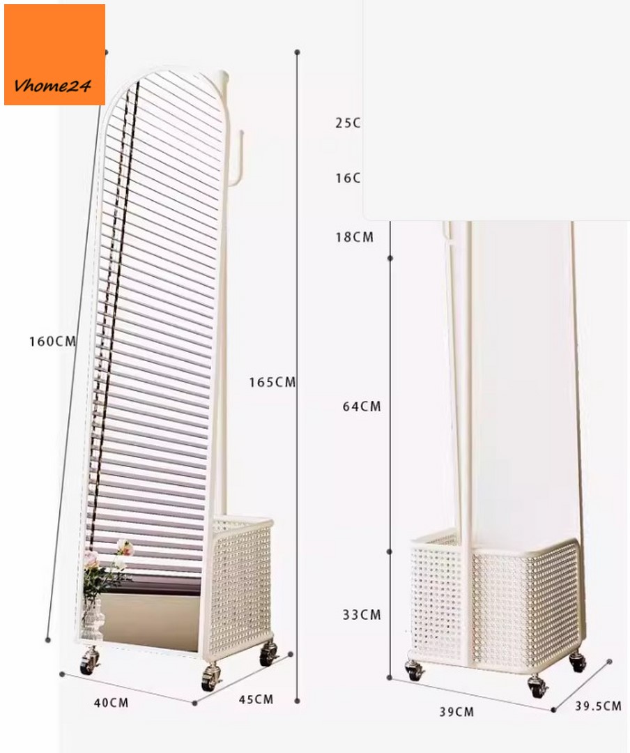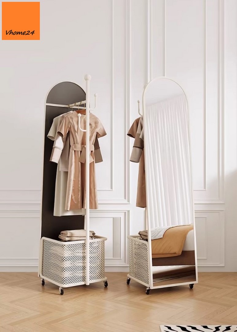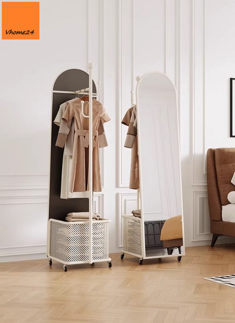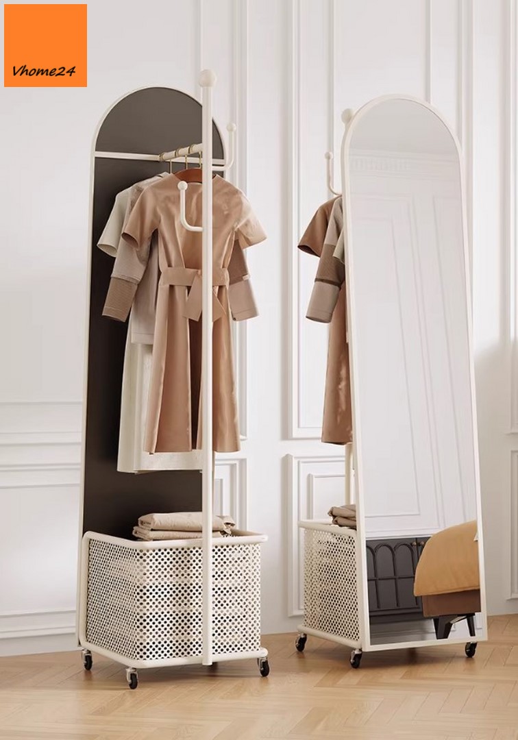 *GƯƠNG ĐỨNG TOÀN THÂN DI ĐỘNG KÈM RỔ VÀ GIÁ TREO ĐỒ GSTT293