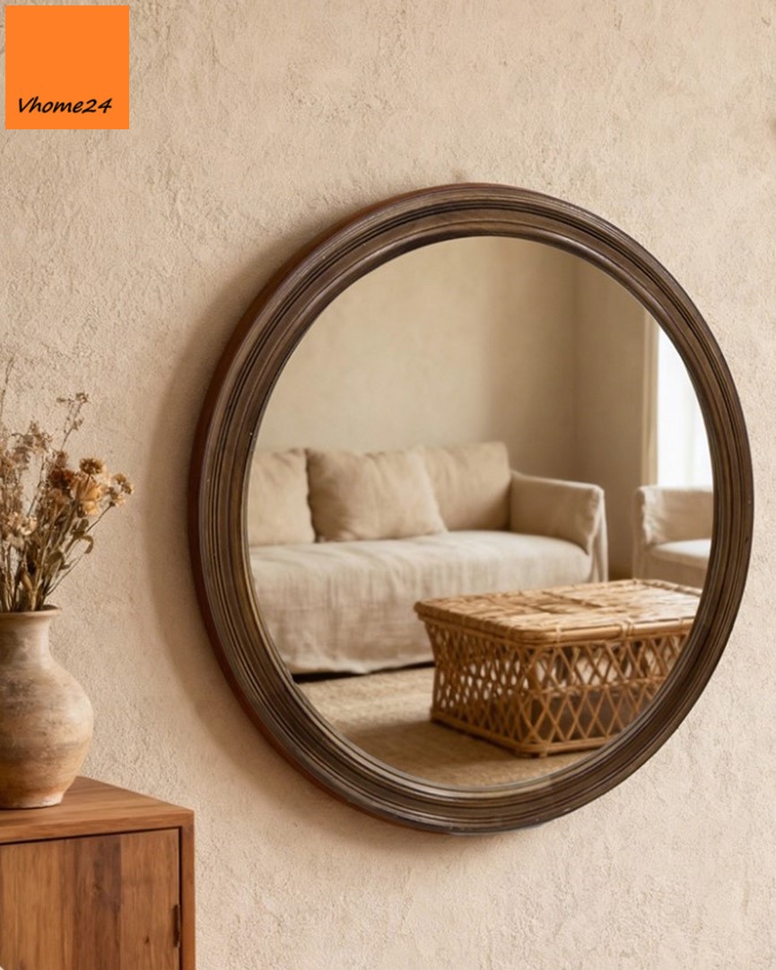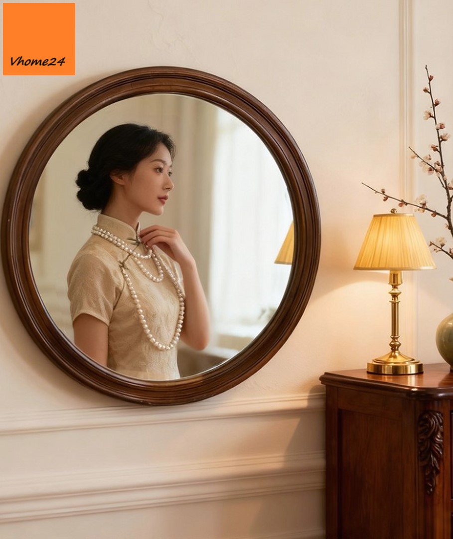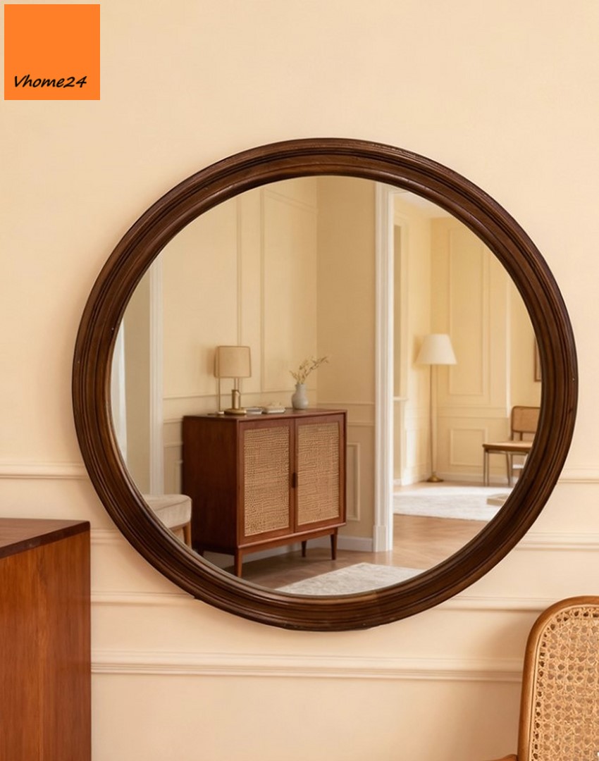 *GƯƠNG PHÒNG TẮM DÁNG TRÒN VIỀN GỖ TỰ NHIÊN GTR077D